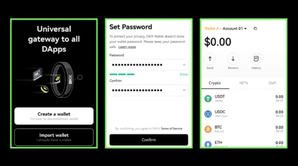 OKX 지갑을 사용하면 다양한 체인에 있는 자산을 편리하게 관리하고, 하나의 시드 문구를 통해 여러 지갑을 생성 및 관리할 수 있도록 지원하빈다. 또한, OKX 지갑에서 바로 자산을 스왑하고 브리징할 수도 있습니다.