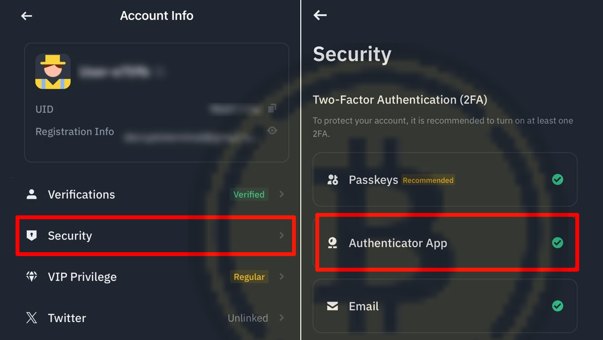 설정 방법은 다음과 같습니다. 바이낸스 앱에 접속하신 후, 왼쪽 상단의 바이낸스 로고를 눌러주세요. 다음으로 프로필 섹션을 눌러주시면, 'Security' 보안 탭에 접근하실 수 있습니다.