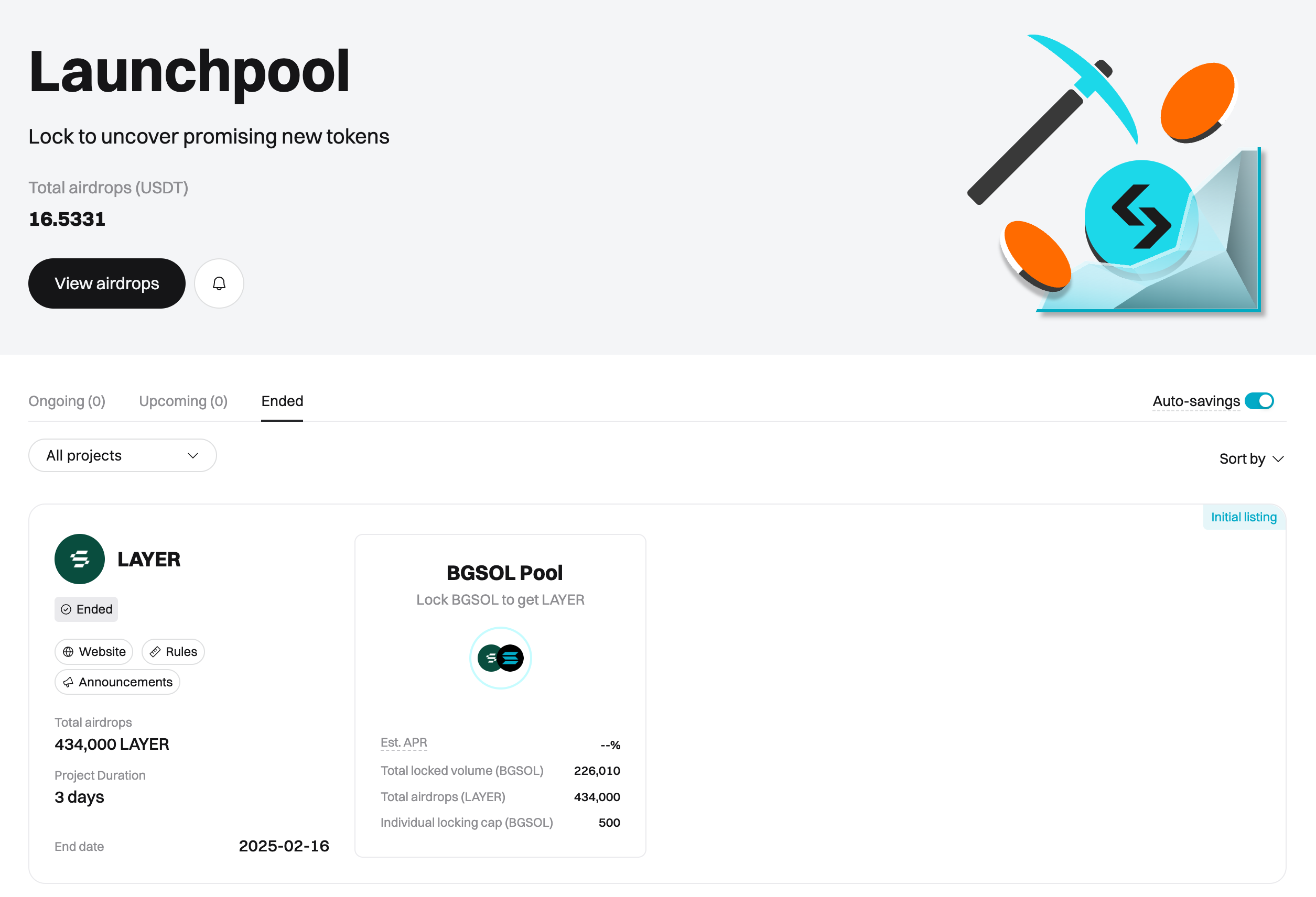 런치풀에 참가하며 스테이킹한 자산은 런치풀이 종료되면 자동으로 반환됩니다. 또는 원하는 경우, 런치풀 페이지에서 언제든지 자산 스테이킹을 해제하고 출금할 수 있습니다.