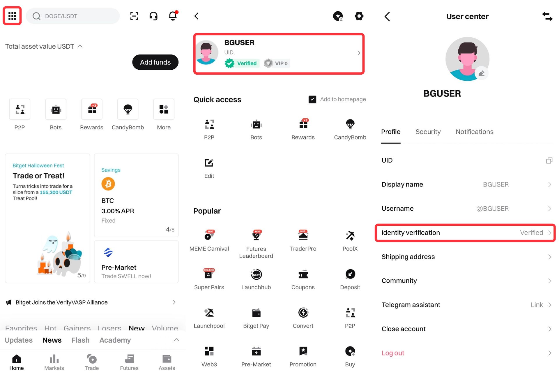 파이코인을 비트겟으로 입금하려면 먼저, 신분증을 인증해야 합니다. 이러한 신원 인증(KYC) 과정을 완료하려면 카메라가 필요하기 때문에, 여기서부터는 앱스토어에서 비트겟 앱을 다운받아 진행하도록 하겠습니다.