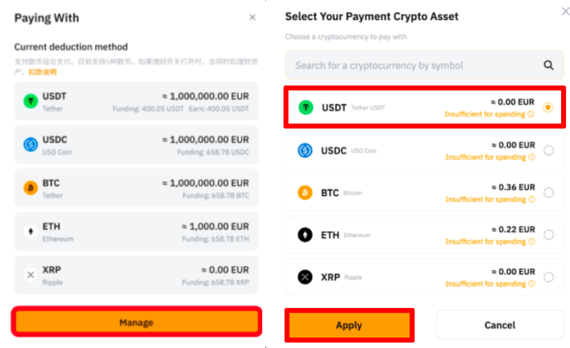 바이비트 카드를 성공적으로 발급했다면, 보유하고 있는 코인으로 결제가 가능합니다. 대표적으로 비트코인, 이더리움, 엑스알피, USDT, USDC 등을 사용할 수 있습니다.
