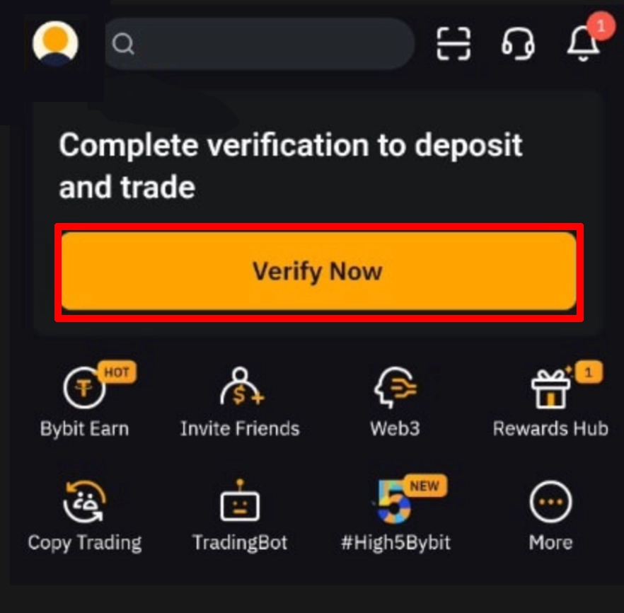 바이비트 앱에 로그인해주세요. 화면 상단에 있는 'Verify Now' 버튼을 눌러 인증을 시작할 수 있습니다.