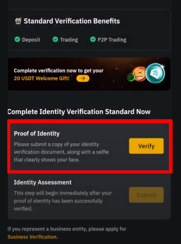 다음으로 'Proof of Identity' 를 누르면 신분증 인증 절차를 시작할 수 있습니다.