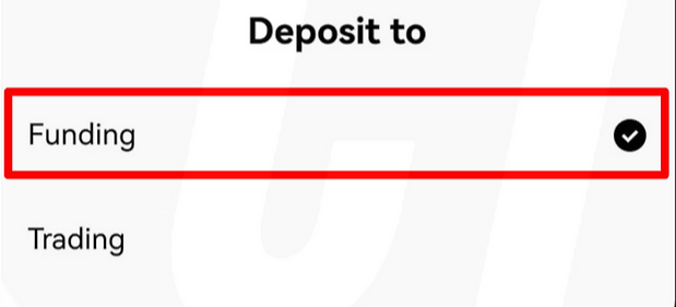 - 입금 시 사용할 지갑은 ‘펀딩 지갑’과 ‘트레이딩 지갑’ 중 선택할 수 있으며, 목적에 맞게 설정해야 합니다.