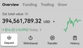 OKX 공식 웹사이트 또는 앱 접속 후, 메뉴에서 ‘Assets’ 버튼을 클릭해주세요. 아래와 같이 ‘Deposit’ 또는 ‘Deposit Crypto’ 버튼을 클릭하여 입금 화면으로 이동할 수 있습니다.