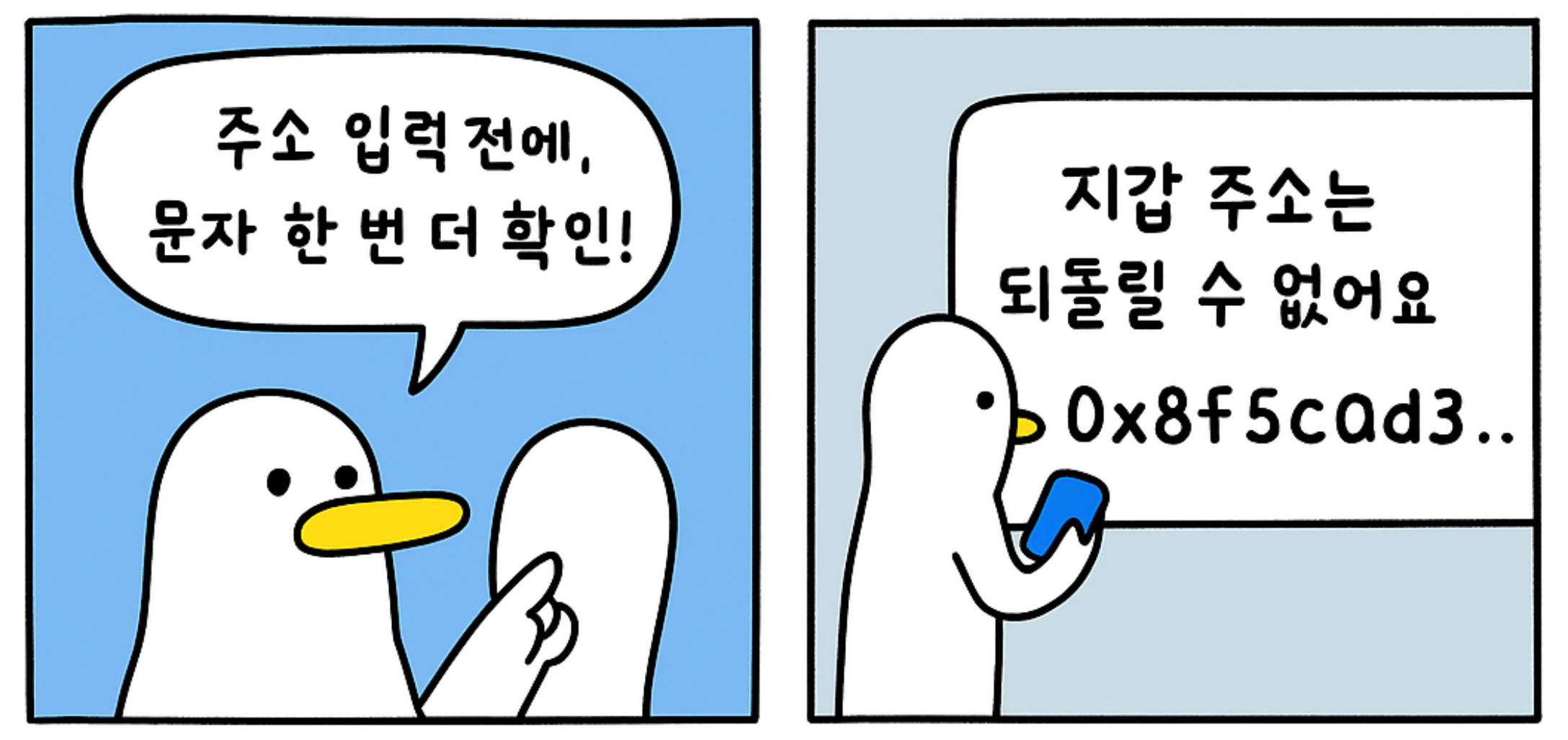 지갑 주소는 사람이 직접 기억하거나 입력하기엔 너무 복잡한 구조입니다. 따라서 종종 실수가 발생하는데요. 그러나 한 글자라도 잘못 입력하면 영구적인 자산 손실로 이어질 수 있습니다.